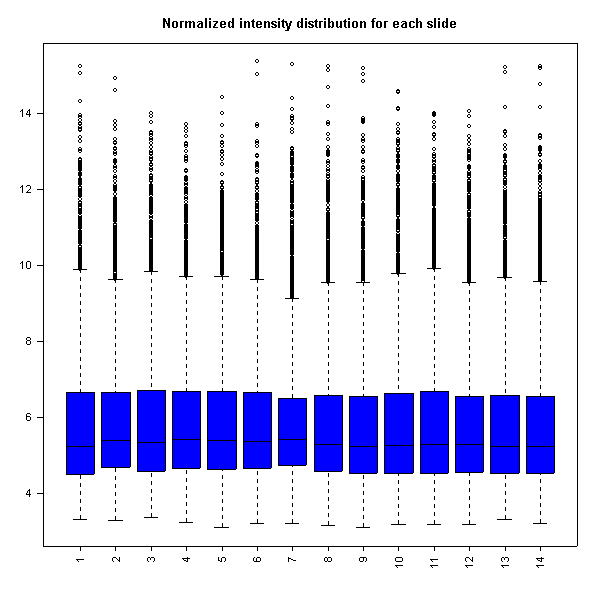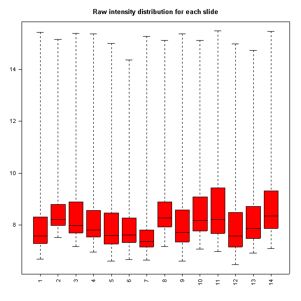 Raw intensity distribution for each slide